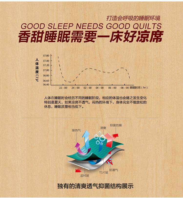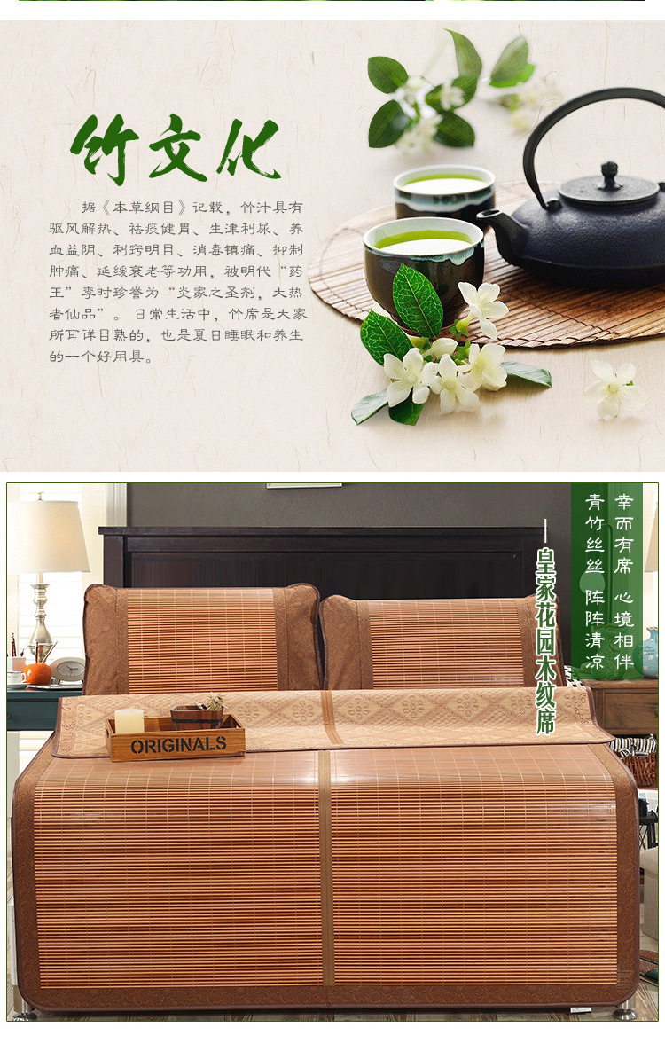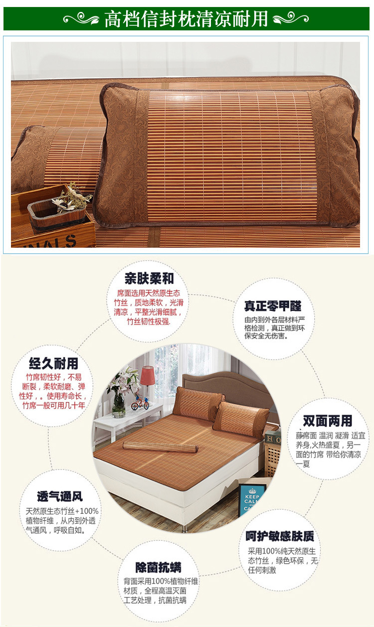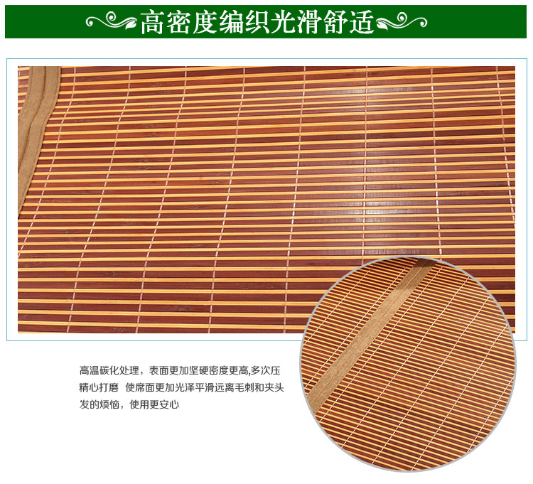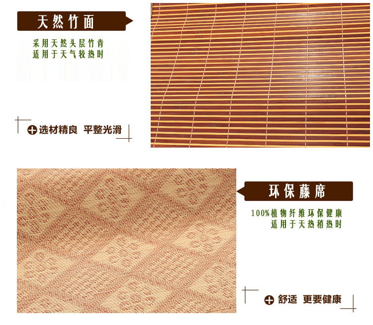 底部100%植物纤维、包边布聚脂纤维(所有竹席为双面席)