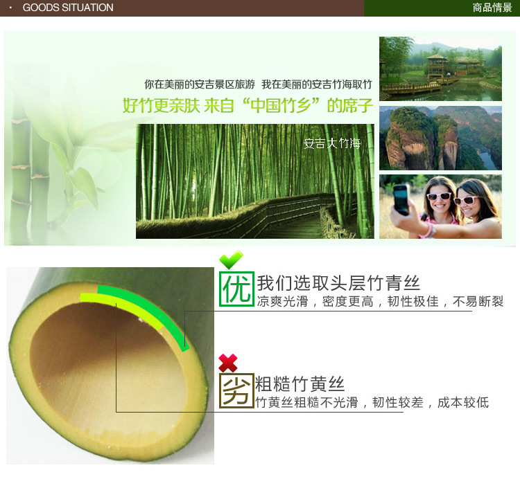 注意,批次不同,竹席包边布颜色可能和图片不是一模一样,介意的亲慎拍!批量裁剪,尺寸误差2-3公分左右,不属于质量问题。