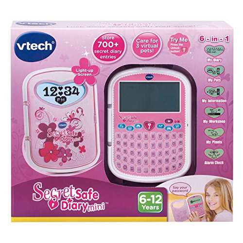 Keep all of your secrets easily and securely locked away! This pocket-sized diary features a voice activated locking system that will only respond to your voice. You can write your own secret diary with over 700 entries, choose from 3 different virtual pets to take care of, grow different plants to feed to your pet, play lots of great girly games, store friend's information and use the alarm clock. The games cover different subjects, such as math, logic, typing, problem solving and creativity. There is also a QWERTY keyboard for easy typing and a backlight to make the screen even brighter. Secret Safe Diary Mini is is intended for 6 to 12 years of age. Unit operates on 3 AAA batteries. Batteries are included for demo purposes. The dimensions of the diary is approximately L5.7" x W4.1" x D0.7"Feature