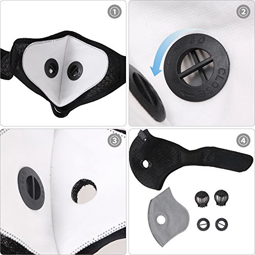 -. Feature : Life is P.R.Iceless, Never Discount: Our cities shrouds in a pollution haze and dust,Anti-smog breathable respirators filterate 95% of the dust, chemicals, the smog, and particulates,it can keep you from dust and haze and stay healthy. / Exquisite Design: Stylish appearance,professional double breather valve,Mesh ventilation design, excellent permeability, air resistance is smaller,smooth breathing,convenient filter cloth.The mask can be washed when they get dirty,and the mask filters can be replaced by yourself and cleaned and recycled it. / Three-Dimensional Cutting out : Face masks have perfect facial design and tailored according to your nose and ears and face ,and they make space to make you breathe healthier. Facial masks are very easy to put on and they stay on your face. / Wide Applicable People: There is a nylon clasp on the back of the mask, which can be adjusted to fit the size and loosen your nose and chin.This surface has plenty of room for your nose, and such joining won't make you feel headache.So our mask suit for everyone whoever the old ,children adults are. / 5.Applicable Place: Protective facial mask can help you stay away from air pollution at Wherever you're running, cross-country racing, skiing, hiking, biking, and so on.