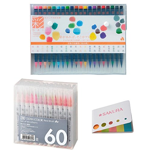 -. Binding : Office Product -. Brand : Kuretake -. Feature : It's a value set of Akashiya Sai Watercolor Brush Pen (20 colors) + Kuretake Real Brush Pen (24 colors). / Pike that brush craftsmen carefully finished with hand-made one by one. / Gansai Tambi is easily water-soluble and beautifully-colored. Paints conform to the international safety standard. / SAKURA DREAMS Original 5 Colors Sticky Notes is convenient to use 5 colors for suitable application -. Label : Kuretake -. Manufacturer : Kuretake -. MPN : 6000AT/24V -. PackageQuantity : 1 -. PartNumber : 6000AT/24V -. ProductGroup : Art and Craft Supply -. ProductTypeName : ART_SUPPLIES -. Publisher : Kuretake -. Studio : Kuretake -. Title : Akashiya Sai Watercolor Brush Pen - 20 Color Set + Kuretake Fude Real Brush Pen, Clean Color, 24 Set (RB-6000AT/24V) for Professional Artists and Crafters+ SAKURA original sticky notes