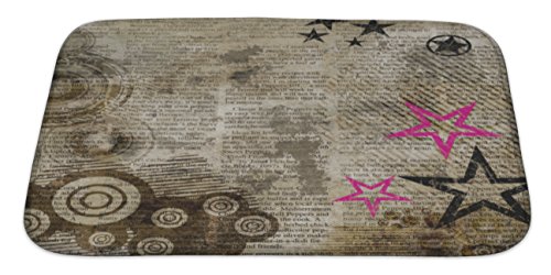 Gear New No Slip Microfiber Memory Foam Retro in Grunge Style with Stars Over Newspaper Bath Rug Mat, 34" X 21"
