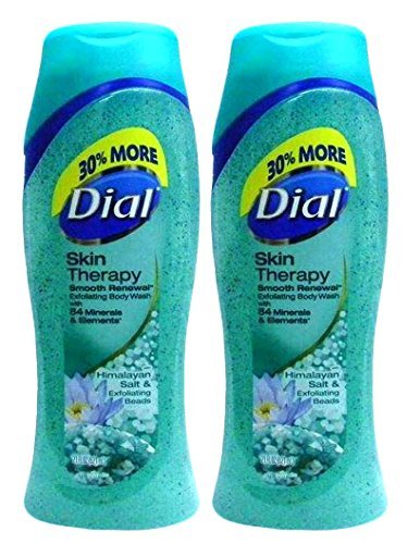 Skin therapy Smooth renewal, exfoliating body wash with 84 minerals and elements Himalayin salt and exfoliating beads Pack of 2, 21 ounce bottles Brand : Dial MPN(PartNumber) : 1910179 Package Dimensions(LxWxH) : 24x10x8cm ; 1361 g