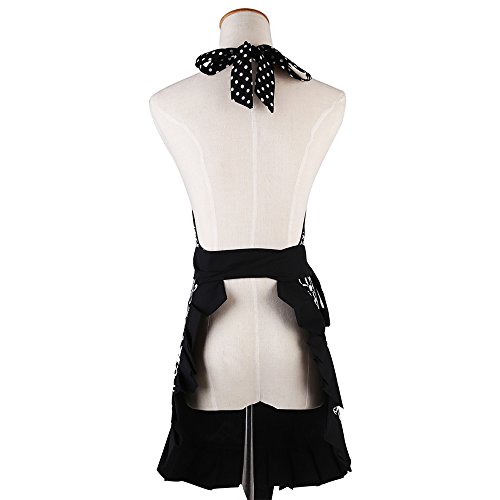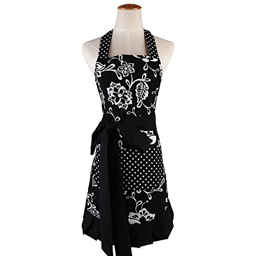 Lovely Classic Style Women's Cooking or Baking Apron with Pockets Fashion Floral Waterproof Garden Apron Great Gift for Wife Daughters Ladies (Black)