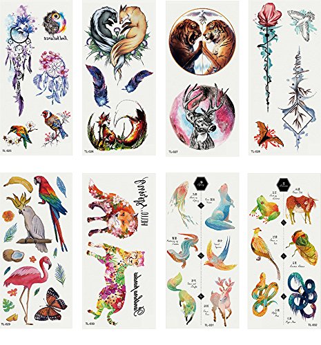 Oottati 2018 New Temporary Tattoo 3D Stickers Set 8 Sheets TL04
