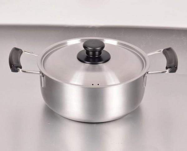 | 軽くて使いやすい、シンプルなステンレス鍋。サテン仕上げです。 |