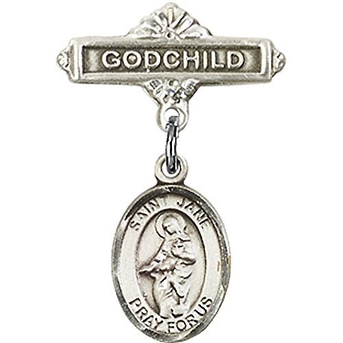 -. Title : Sterling Silver Baby Badge with St. Jane of Valois Charm and Godchild Badge Pin 1 X 5/8 inches