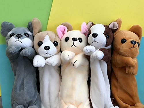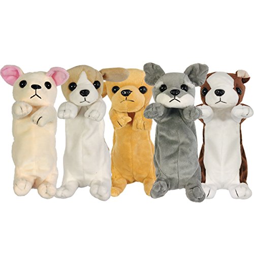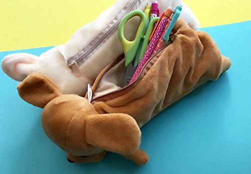 ALLYDREW Plush Dog Shaped Pencil Pouch, Tan and White