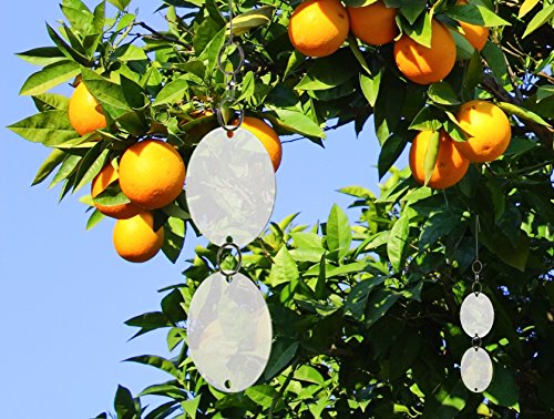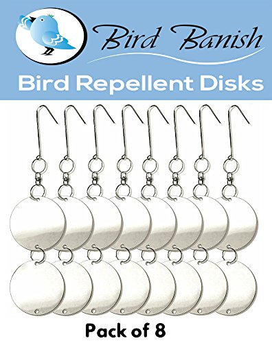 -. Feature : NO MORE BIRD PROBLEMS! - These bird repellent disks deter any kind of bird like Crows, ravens, pigeons, woodpeckers, herons, grackles from your garden, patio or lawns. Effective and makes an attractive addition to any back yard, porch or garden decoration. / CREATE THE PERFECT PROTECTION - Protect your trees, flowers, fruits, vegetables . Keep it free from mess, damaged and noise. The light reflective from the mirror will scare the birds from your house, boat, or any other area you want to keep bird -free. / ECO-FRIENDLY GARDEN - Keep your garden chemical free with these harmless 360° rotational reflective disks. Only natural sunlight is used to keep birds away. / SIMPLE TO USE! - Easy to install, simply Hang over garden, fruits and vegetables. Make sure the stainless steel disks are in direct sunlight, so that the reflection will scare away birds. Contains 8 sets of repellers - 11" (28cm total height) 2.95" (7.5cm diameter) / LIFETIME GUARANTEE! - We are sure that you will be 100% satisfied with our environmentally, friendly, non lethal deterrent product.This permenent solution will help you to get rid of birds around your house.