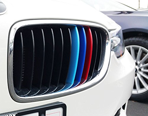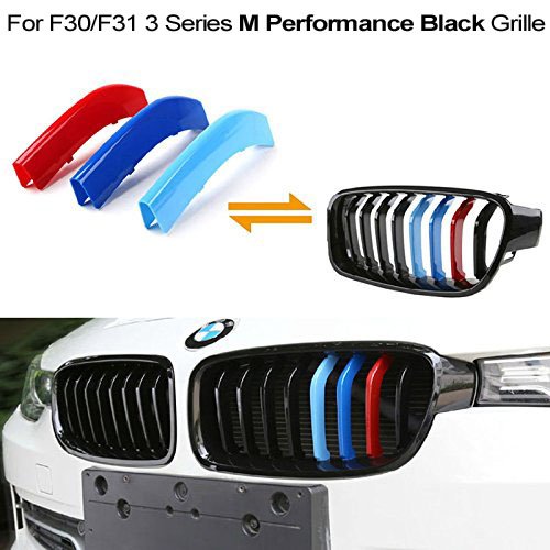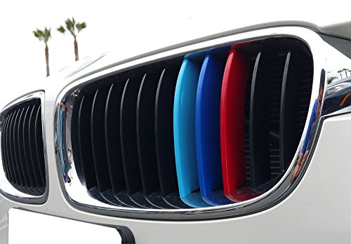 This listing features one set of M-sport heritage style stripes in the BMW Motorsport colors for the 2012-up BMW F30 3 Series and 2014-up F32 4 Series standard center kidney grille (Not for the optional M-Performance Black Kidney Grilles). This M-stripe style grille is made from ABS plastic that does not fade and is easy to install in just a few minutes.