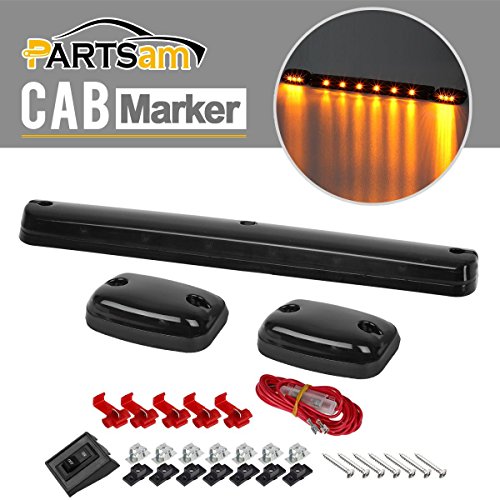Partsam 3x Smoke Cab Light Roof Running Cab Marker Amber LED Lights Assembly for 2008 - 2016 Chevy Silverado 1500 2500 2500HD 3500 3500HD/GMC Sierra 1500 2500 2500HD 3500 3500HD