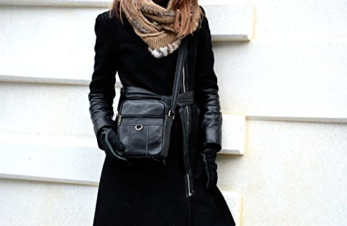Deep Black Leather Crossbody Bag for Women Purse Ladies for Everyday