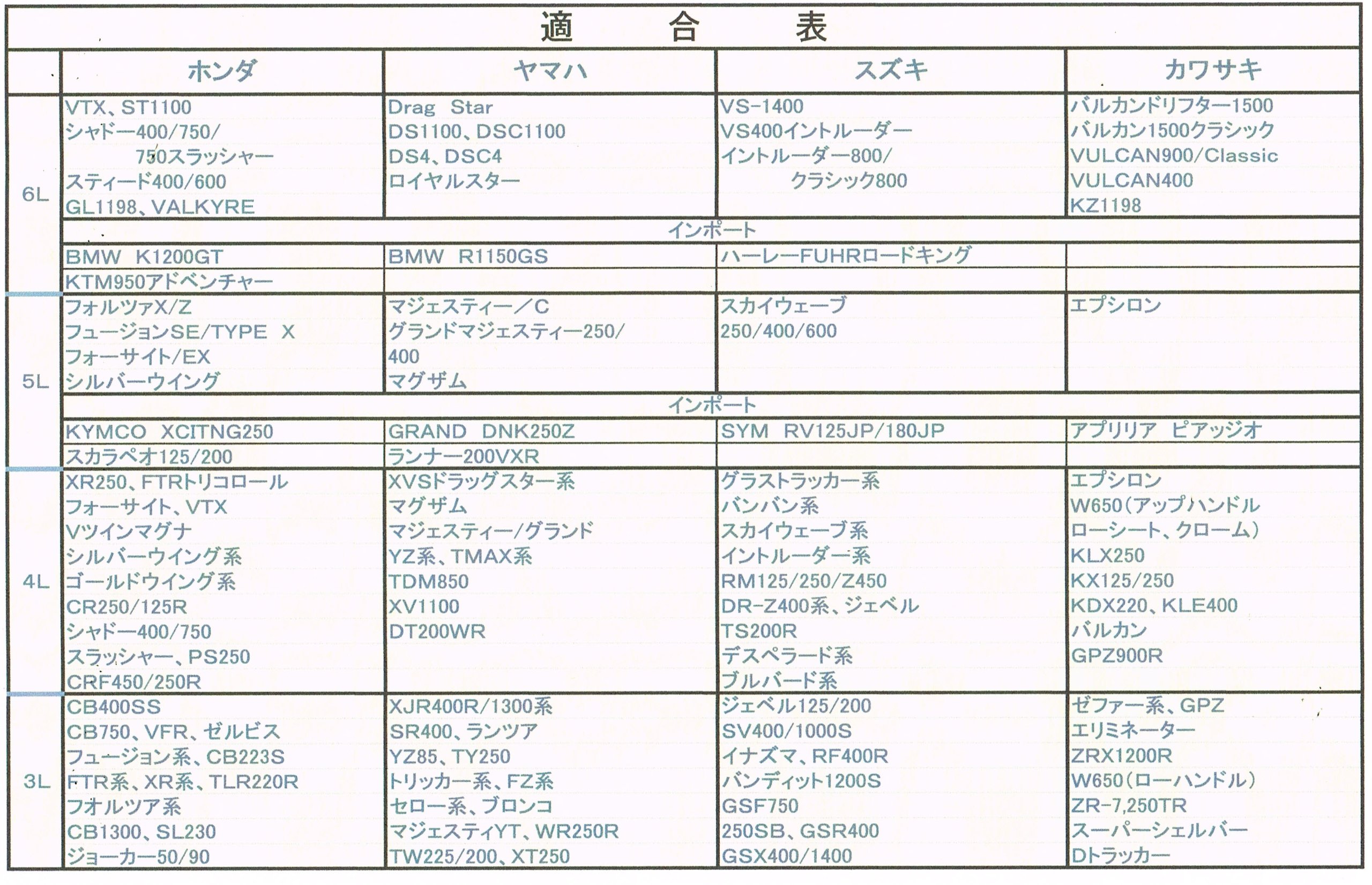 Standard: 6L size (Please check the size of the motorcycle and select it)