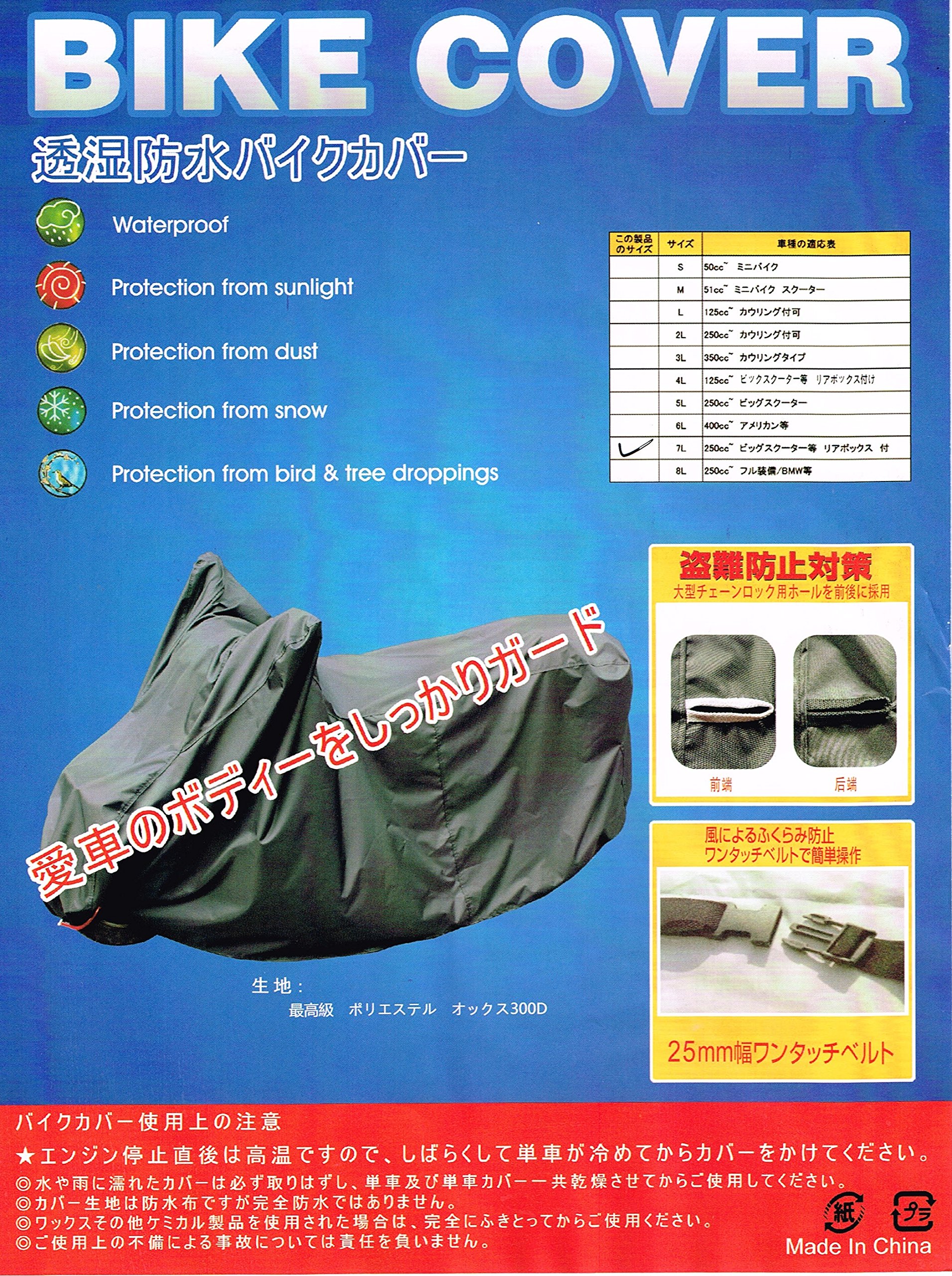 Cover for motorcycle fabric: 100% Polyester Ox Body Weight 1.150 g of the highest grade