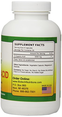 Biotech Nutritions D-Aspartic Acid Dietary Supplement, 3000 mg., 200 Count