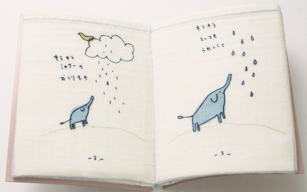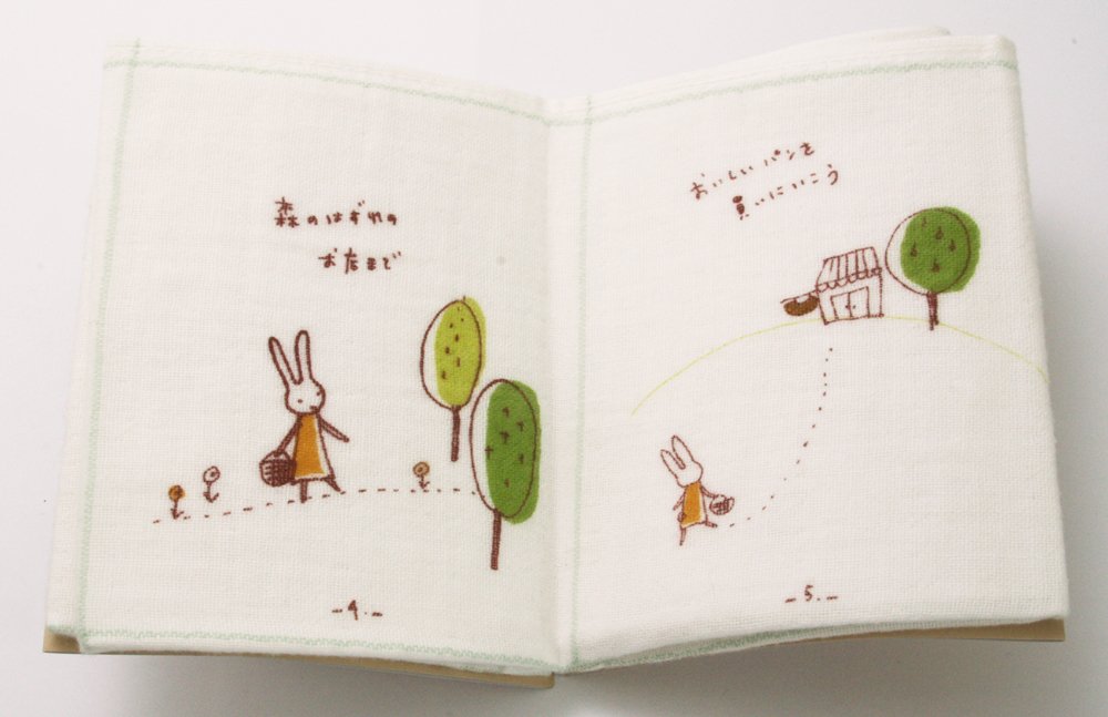 Picture book towels that can be read and enjoyed, made of a soft gauze towel folded.