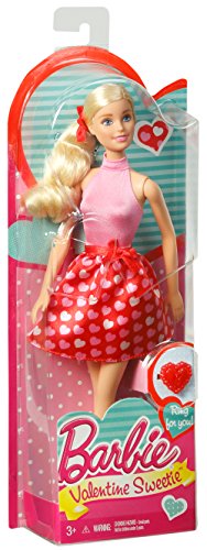 -. Binding : Toy -. Brand : Barbie -. EAN : 0887961228618 -. Feature : Make Valentine's Day extra sweet with this doll and gift for you, too! / Modern, trendy dress features a pink top and adorable skirt with an all-over heart print / Red hair tie, belt and stylish shoes complete the Valentine look / Includes a red heart-shaped ring sized for a child so you can dress up, too! / Makes a perfect gift for the Valentine's day! -. Label : Mattel -. Manufacturer : Mattel -. Model : DJN68 -. MPN : DJN68 -. PackageQuantity : 1 -. PartNumber : DJN68 -. ProductGroup : Toy -. ProductTypeName : TOYS_AND_GAMES -. Publisher : Mattel -. ReleaseDate : 2015-12-01 -. Studio : Mattel -. Title : Barbie Valentine Sweetie Doll -. UPC : 887961228618 -. Warranty : 1 year warranty against manufacturer defects