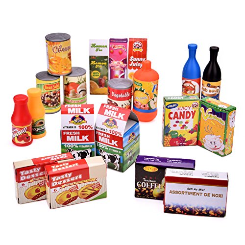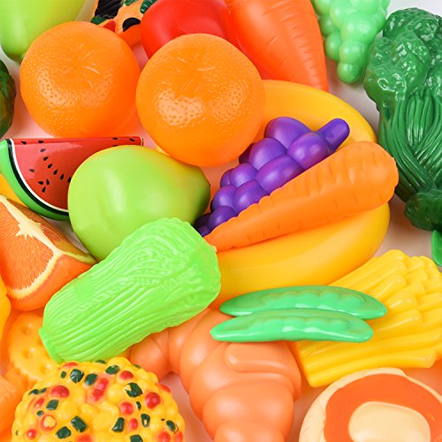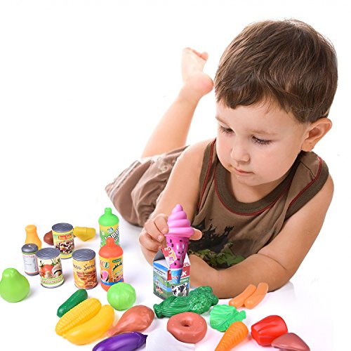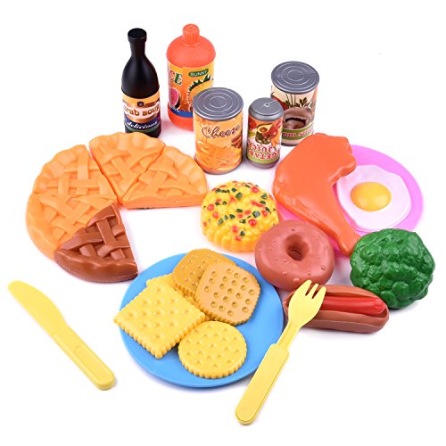 Pretend Play Toy: A heavy duty food set can be used for play kitchen, play restaurant, and shop for groceries game.