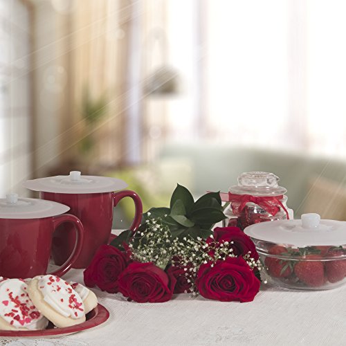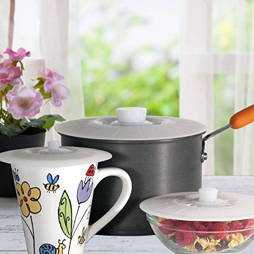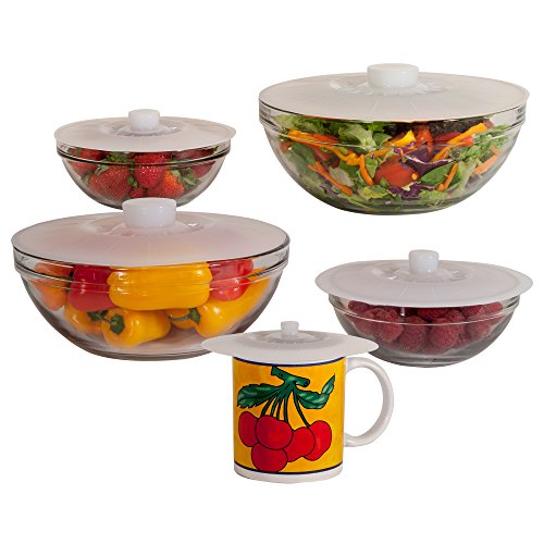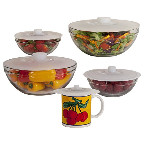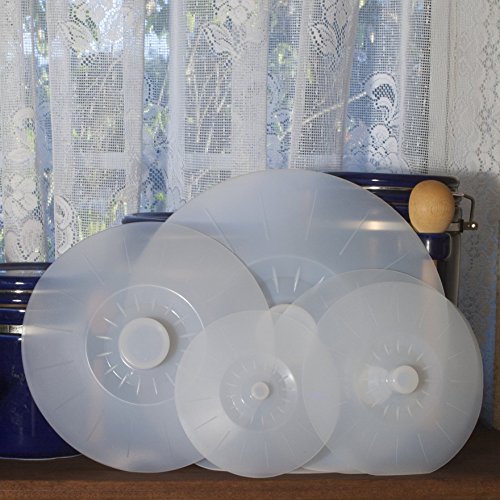 These attractive and reusable silicone suction lids are a perfect gift idea during the holidays for anyone who cooks, new movers, newlyweds, and the "hard-to-buy-for" list. They are perfect year-round, indoors or outside for so many uses, you are sure to wonder how you did without them, and so will they. You will be Amazed at how well they suction seal and delighted with all the many uses you can put them to, from cooking and microwaving, to storing or serving. These lids are an easy, elegant, and time saving addition to your kitchen tools. And believe it or not, they're actually fun to use! So eliminate the waste and frustration of plastic wrap and foils. Reduce clutter with our interlocking lids that store like a breeze. And feel secure that these are FOOD SAFE and BPA Free, because we ensured our lid material was tested and certified FDA compliant. They come in 5 Convenient Practical Sizes from 5" to 10.2"for smooth rimmed cups, bowls, pots and more. 100% SATISFACTION GUARANTEED If you have any questions, problems, or ideas just contact us. We're happy to help. Our professional full color glossy package even includes some Helpful Use and Care Tips. So be excited, because when you click the "add to my cart" button right now, you're just a few days away from enjoying their "magic" and impressing your friends. (After all, besides function, there's fun, and lifting a bowl with a suction lid is a truly amazing trick!) 0 |