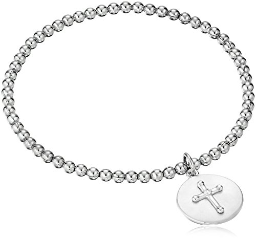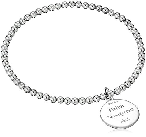 -. Title : Sterling Silver Diamond Accent "Faith Conquers All" Cross Stretch Bead Charm Bracelet