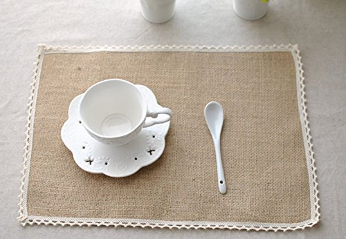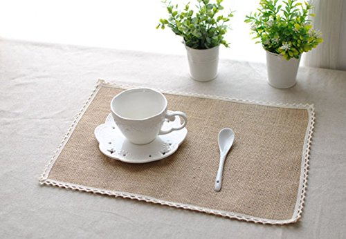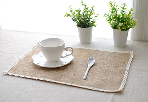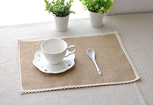 (Generic)/Kitchen Dining/Kitchen Table Linens/DIRECT FROM USA/Burlap Lace Placemats, Nature Jute Woven Table Mats, Set of 8, 16 "?x12", Wedding Party Decor