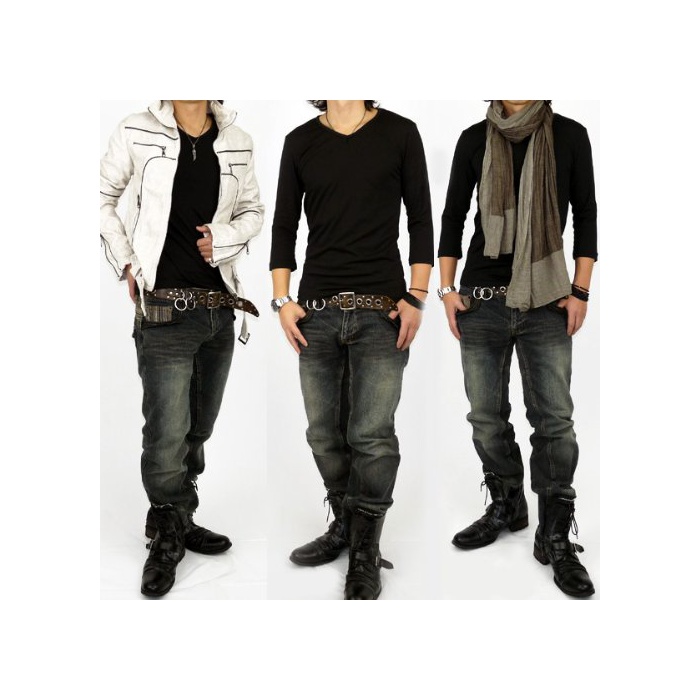 원본상품명: [f29]七分袖/VネックTシャツ/メンズ&レディス7分袖[ブラック]細身/タイト