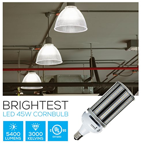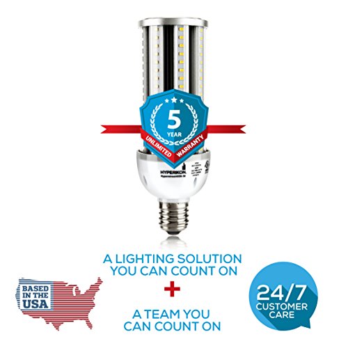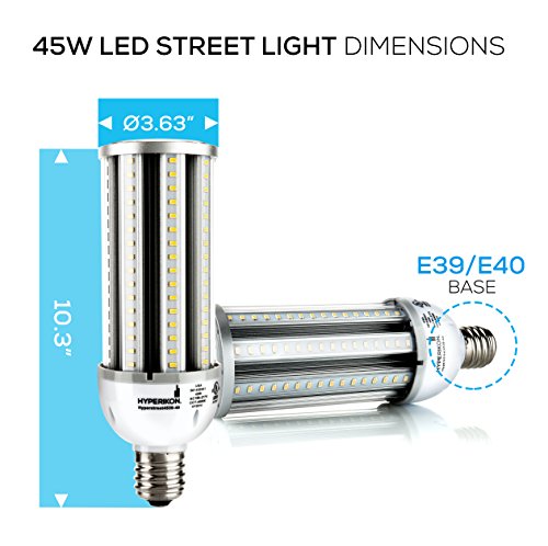 Hyperikon LED Street Light, 45W (250W Equivalent), E39 (Large Mogul Base), 5400 lumen, 3000K (Soft White Glow), 320° Omnidirectional, 100-277v, CRI 85, UL-listed and DLC Certified