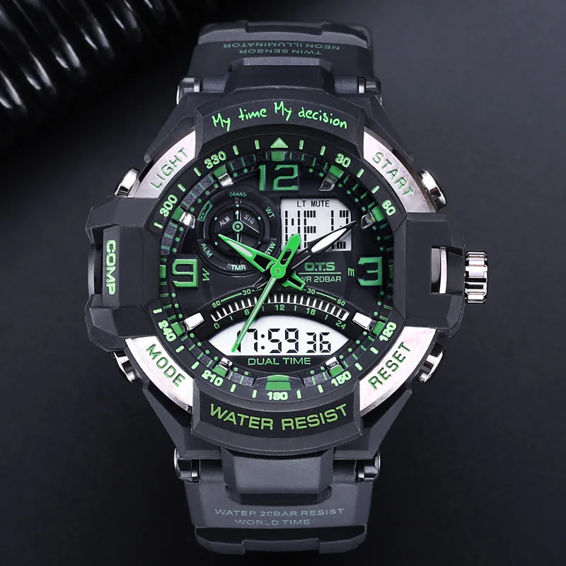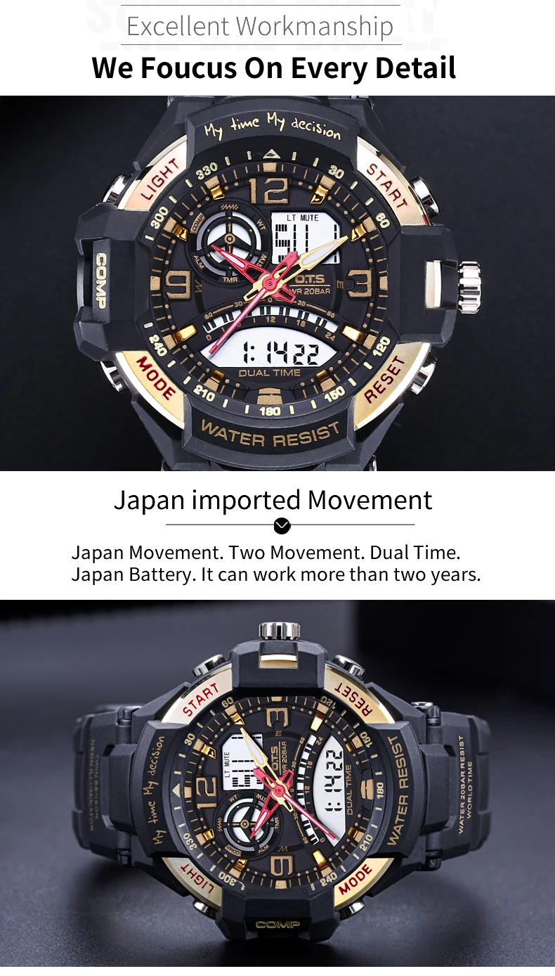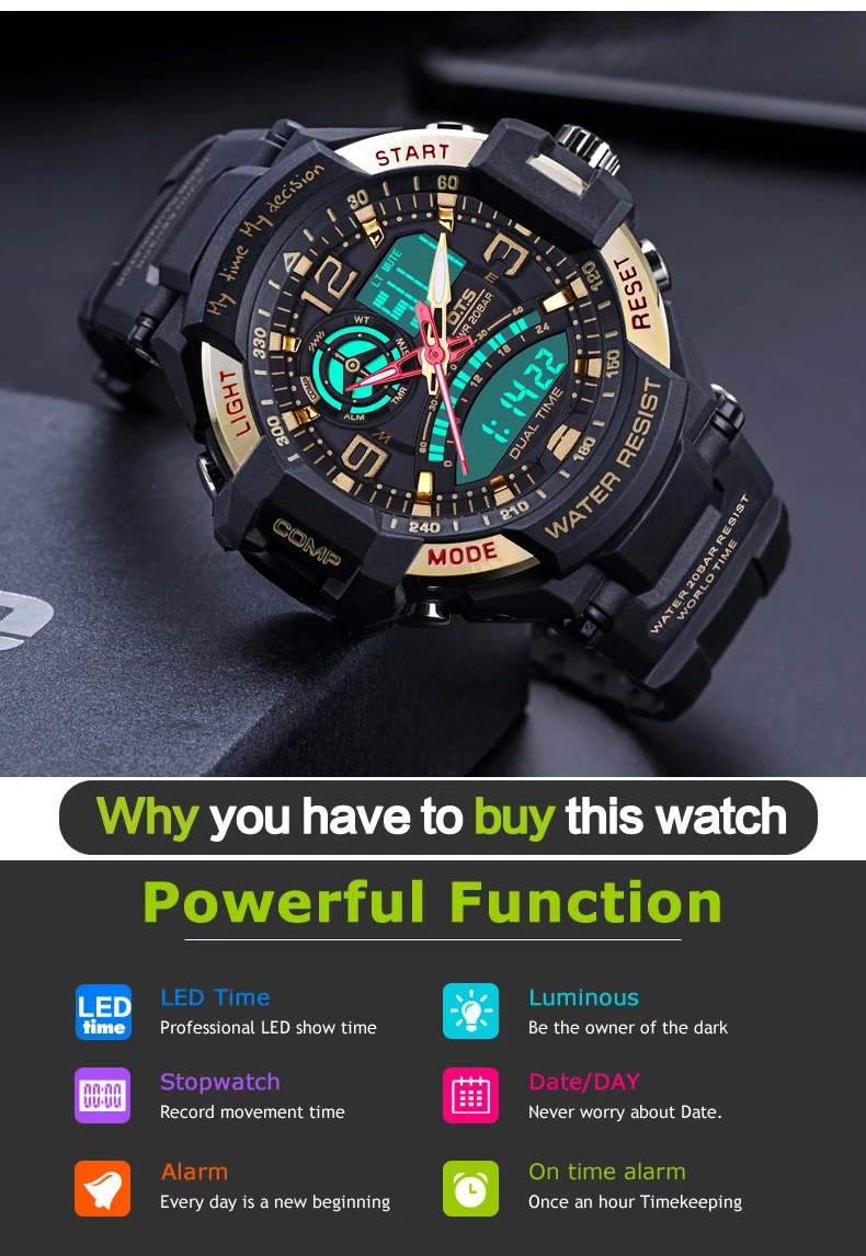 Feature:Alarm,Back Light,Water Resistant,Multiple Time Zone,Chronograph,Week Display,Repeater,Stop Watch,Complete Calendar,Auto Date,LED display