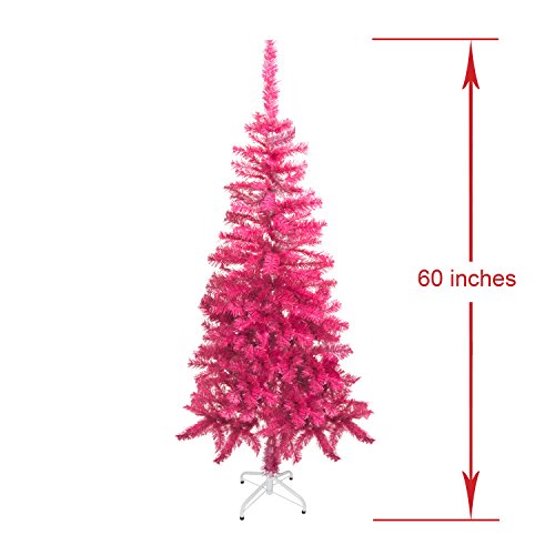Get into the holiday spirit with this luscious ALEKO Christmas tree and decorate your home with holiday cheer. Our premium artificial tree is made out of dense PE needles, giving it that fresh cut look that will last all season. The tips are sculpted to enhance the lifelike appearance, and the staggered branches create a fuller profile. No more messy needles, sap, or spilled water. It's quick and easy to set up, and creates a warm holiday environment. The tree is 5 feet tall. Spice up your holidays with this unique Canadian Pine powder pink Christmas tree and make your celebration unforgettable. Great for indoor and some outdoor use. Perfect for decorating any room in your home or office. Bring joy and warmth into this holiday season for you and your friends and family to enjoy. It comes with a white metal stand. Soft pink color. 282 Tips.Feature