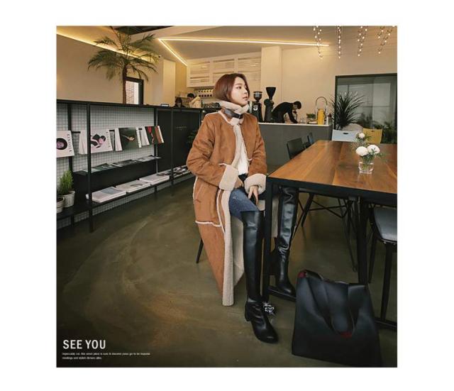 トレンド シンプル ロングコート ムートン ハイネック ボア素材 スタイリッシュ 秋冬 上品 エレガント S M L XL