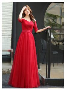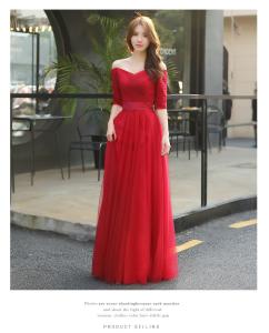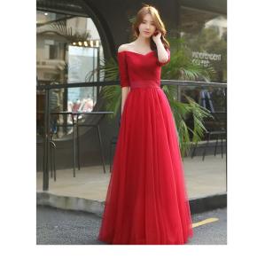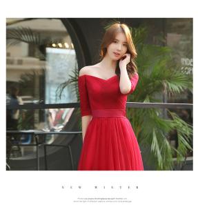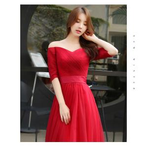 マキシ丈ワンピース フレアスカート タイトトップス Vネック 5分袖 チュールスカート オフショル ウエスト切り替え