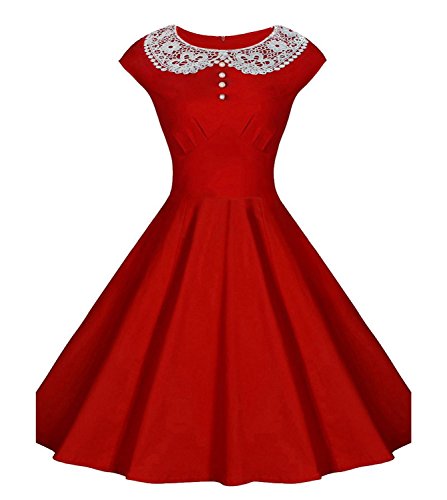 *Vintage Peter Pan Collar Cap Sleeve Lace Crochet Women's Dress
