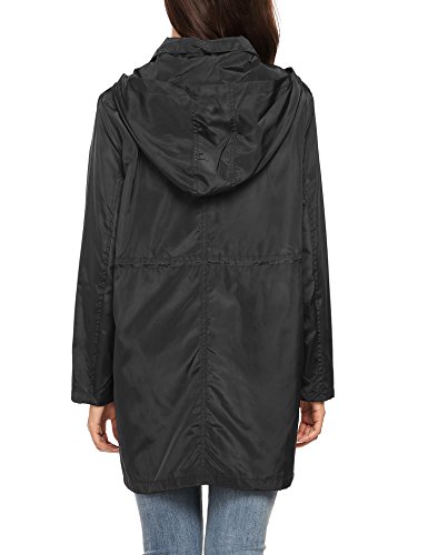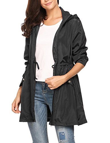 Elesol Women Casual Hooded Long Sleeve Zip Up Rainproof Windproof Jacket Raincoats