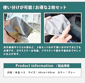 [TARO WORKS] ガラス窓専用 マイクロファイバークロス 内外装 2 Pack