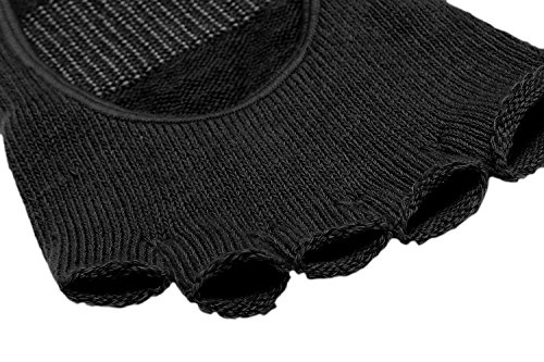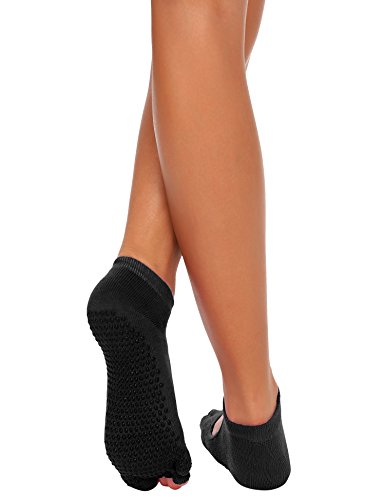 -. Feature : BREATHABLE & SOFT MATERIAL: :Made of breathable cotton, very soft and be of good ,moisture-wicking material hugs your foot and keeps you clean and dry. / NON SLIP:Environmental non slip dots on the bottom of the sock design, they can give the movement of the feet provide a buffer and reduce the risk of slipping even on smooth surfaces, help you better on the floor and mat security balance, as well as the function of keep your feet warm. / THE UNIQUE FIVE-TOE OPEN TOE SEPARATION DESIGN:It maintains the integrity of bare feet, so your toes can spread and provide a stable base, can increase the flexibility of your toes and sensitivity. / GRIP: Our grips really stick even after multiple uses and washes. We keep you connected to the mat, machine or floor. / GREAT FOR ANY TYPE OF EXERCISE:Yoga Socks are perfect to use for Yoga, Hot Yoga, Pilates, MMA, and any other physical workouts done without shoes.Open hollow out design allows for better tactile feel and balance.