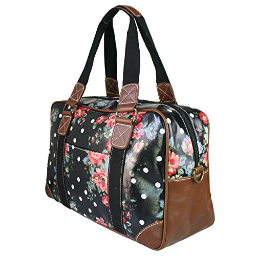 -. Brand : Miss Lulu -. Department : womens -. Feature : Measurements (approx):24cm x 15cm x 38cm / Made from high quality oilcloth and faux leather trim. / Convenient large compartment travel bag with side pocket / Contains two inner zipped pockets and two inner open pockets. / Matching handles and an adjustable shoulder strap (approx 120cm fully extended). -. ProductGroup : Shoes -. ProductTypeName : HANDBAG -. Title : Miss Lulu Canvas Oilcloth Fashion Tote Shoulder Handbag for Women