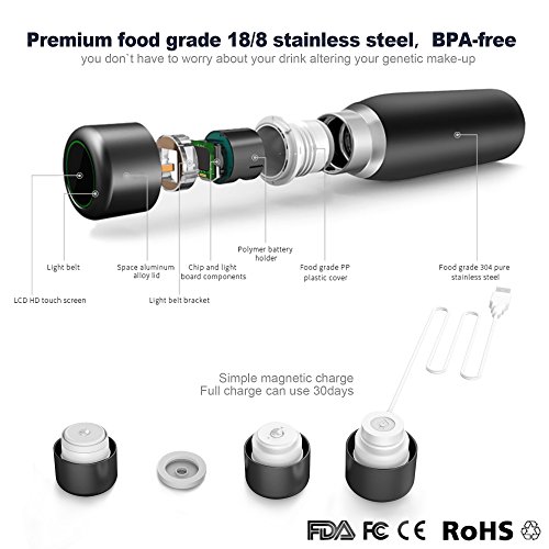 🎁TIMING FUNCTION, ALARM REMINDER, MAGNETIC CHARGING, EASY TO USE - Designed to remind you to drink water regularly or take medicine on time. DAWAY G3 smart water bottle also has expired water reminder function, help you develop healthier water consumption habits. No need smart phone or Bluetooth, easy to operate. Fast charging, 1.5 hrs to fully charge, work time up to 30 days. Energy saving, eco-friendly! Good Health partner