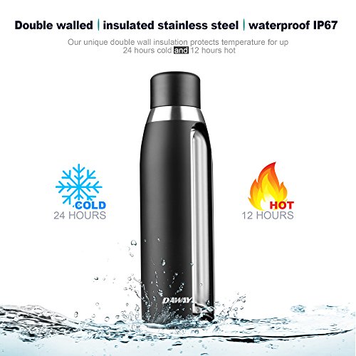 👍SAFE, ECO-FRIENDLY, HEALTHY, DURABLE QUALITY - DAWAY G3 smart water bottle is made of premium food grade 18/8 stainless steel, non-rusting, corrosion-resistant, non-toxic, odorless. This stainless steel water bottle is double walled and vacuum insulated, even filled with ice or boiling water, it won't sweat or get hot to the touch! Safer and healthier than plastic or glasses water bottle