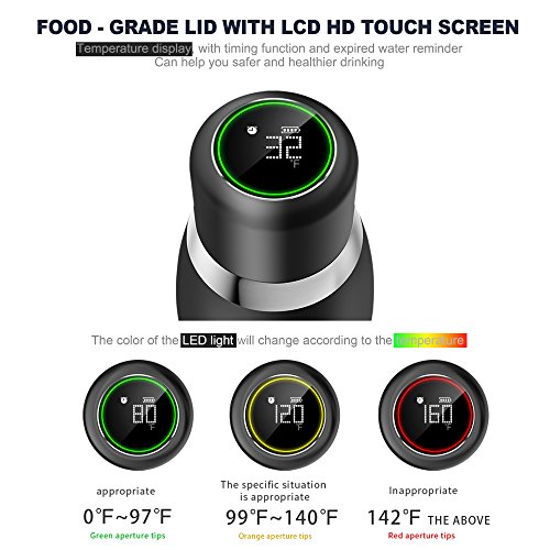 🎁TEMPERATURE DISPLAY, KEEP COLD FOR 24 hrs, HOT FOR 12 hrs - Touch the lid, LCD touch screen will display the current temperature of beverage. The size of DAWAY G3 insulated water bottle is 17oz, large capacity to fit your daily hydration needs. You can also store ice, coffee, milk, beer, drinks, etc. We also provide a portable water bottle holder bag as gift, convenient to carry the insulated water bottle to go anywhere. Best gift for family or friends