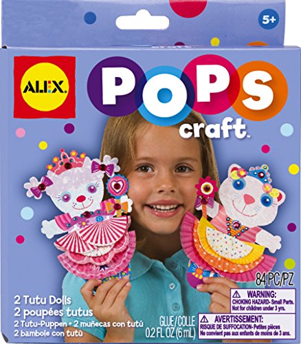 ALEX Toys POPS Craft 2 Tutu Dolls contains everything your little one needs to create and play with their own toy. POPS Craft kits are compact sized (7.25in. x 6in.) complete craft kits. Kids can make things to wear, display or play with. Great to give out as prizes and thank you gifts, they’re also ideal for gift baskets and stocking stuffers. Includes 14 cupcake liners, 8 paper shapes, glue (0.2oz. / 6g.), 30 sticky gems, 31 stickers and easy instructions. Recommended for children 5 years of age and older.Feature
