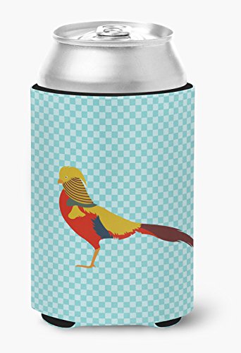 Caroline's Treasures BB8102CC Golden Or Chinese Pheasant Blue Check Decorative, Can Hugger, Multicolor