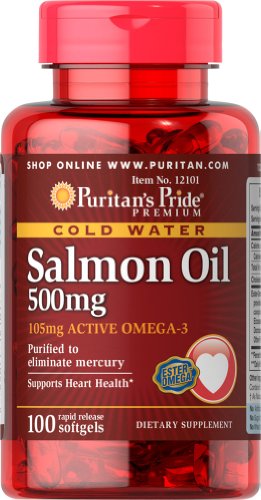 Puritans Pride Salmon Oil contains the finest Salmon Oil available. Salmon contains a high concentration of Omega-3 fatty acids that have been shown to help promote metabolic, circulatory and heart health. Take two softgels two times a day to gain the essential fatty acids your body needs for good health.