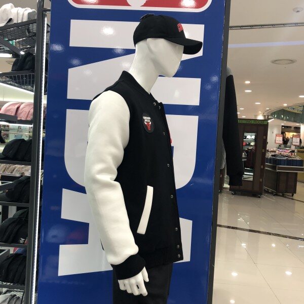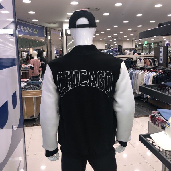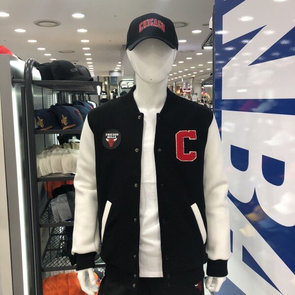 가슴부분 시카고불스 로고와 등판부분 자수로고가 포인트입니다. 팔부분은 네오프랜 배색처리로 포인트를 더했습니다. 레귤러 핏으로 기본자켓보다 조금 크게 나왔습니다.