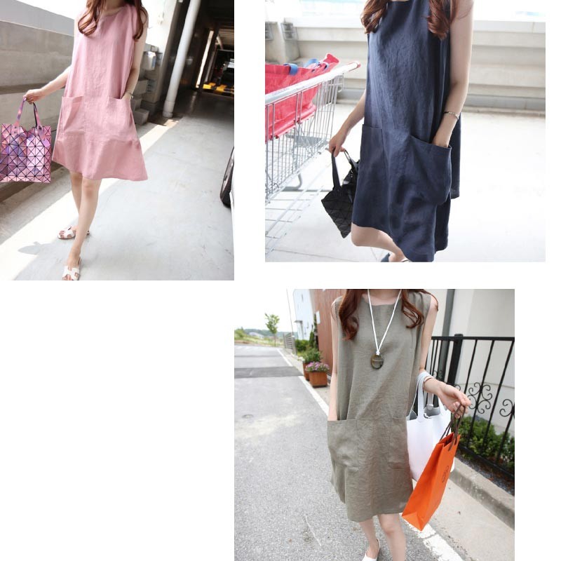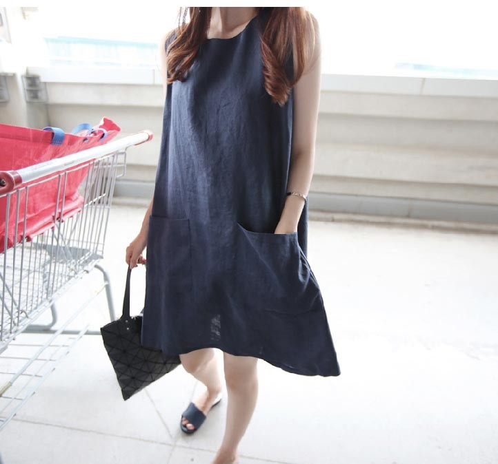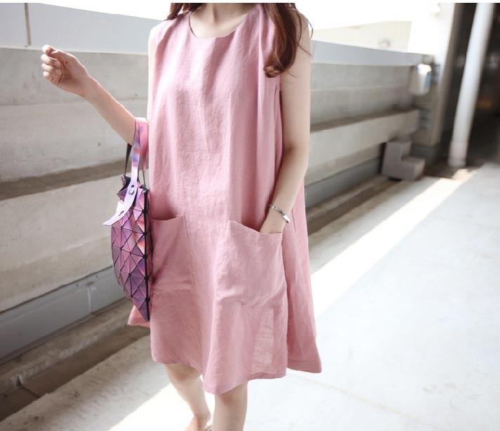 ラウンドネック・ノースリーブで肩から裾にかけて広がるテントラインワンピース♪