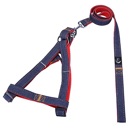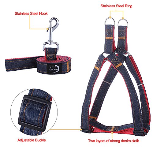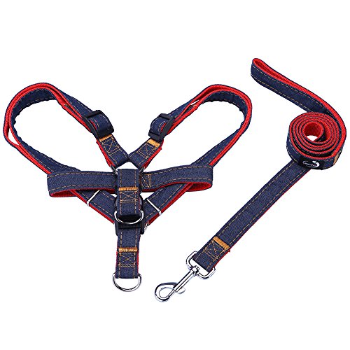 (JINCHAO)/Pet Supplies/Collars, Harnesses Leashes/DIRECT FROM USA/JINCHAO Dog Harness Denim Leash, L (Chest:19.7"-29.9"), Red