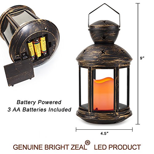 BRIGHT ZEAL Vintage HEXAGON Candle Lantern with LED Flickering Flameless Candle (Distressed BRONZE, 9" TALL, Timer, Battery Included) - Indoor Hanging Lights - Candle Lanterns Decorative