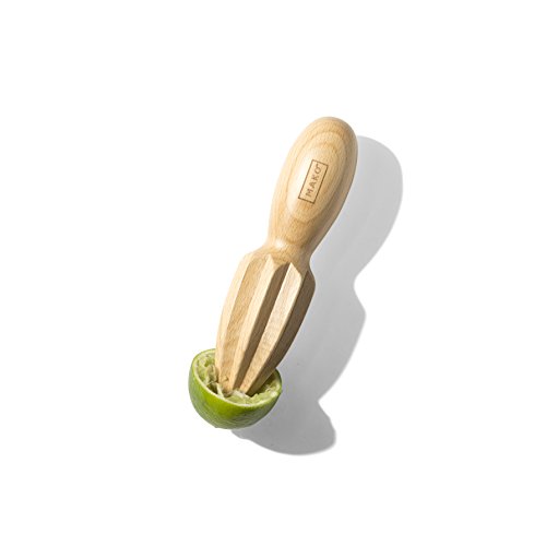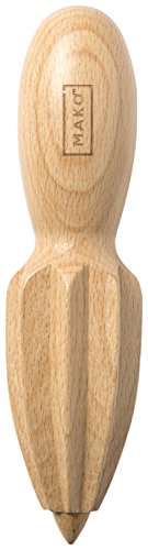 Studio : MAKO Publisher : MAKO Binding : Kitchen Product Description The MAKO Juicer reams lemons, limes, and other fruits for an extra fresh margarita or cocktail. Constructed with durable beach wood, this hand juicer is just as functional as it is fun to use. The sharp tip pierces citrus to begin juicing, while the rounded handle provides comfort and control. Designed for style and consistency, this hand juicer makes the perfect addition to any home bar. 0