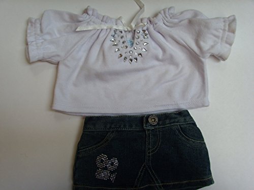 -. Title : Build a Bear Workshop White Crystal Trim Shirt & Blue Denim Skirt Clothes for 15" - 18" Doll