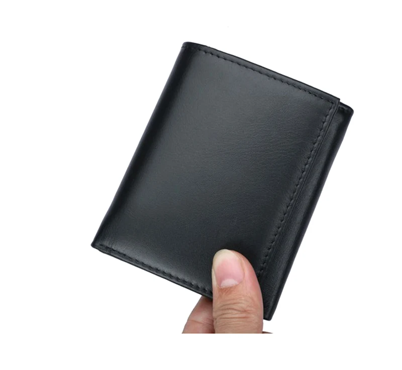 男性の革財布つ折りrfid安全なブラックソリッドクレジットカードホルダー財布男性ショート財布とドル財布本物革