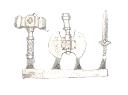 -. Feature : This weapons collection includes a 19mm sword, an 18mm axe, and a 17mm hammer and will add a bit of detail to dungeon crafting, dungeon-crawling, rpgs and table top war games. / Miniature parts could be used in dungeon crafting, to represent rewards to players of tabletop rpgs, or to modify miniatures to add additional weapons/gear. / No base included. Parts are made of 100% lead free pewter. / The pictures of the painted miniatures are for inspiration and are only examples. / Miniatures come unassembled and unpainted, some filing may be needed to clean up excess flashing, or sprue. Choking hazard - not suitable for children 10 and under.